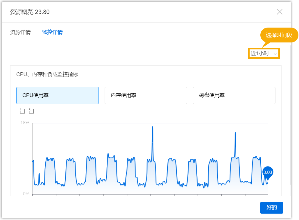 | 内存使用率 | 显示所选时间段内已使用内存占总内存的百分比。 |