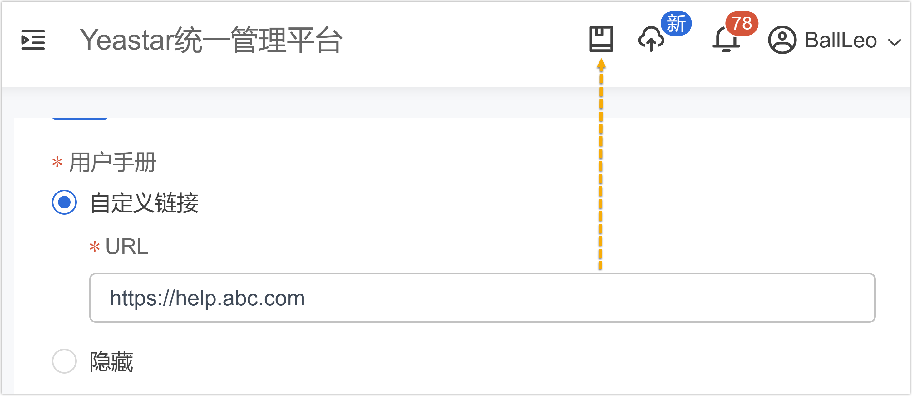 用户手册 设置用户手册。 注: 用户手册的 URL 必须以https://或http://开头。 - 横版 Logo:上传一个横板的 logo,该