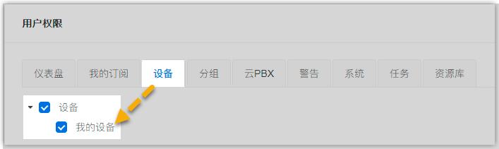 。 - 向下滚动到 用户权限 栏,设置同事可以访问 Yeastar 统一管理平台上的哪些功能。