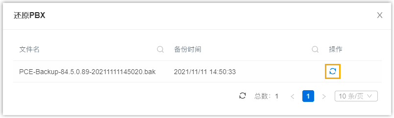 - 如需从其他 PBX 的备份包进行还原,请参见 还原 P 系列云 PBX 到其他备份包。
