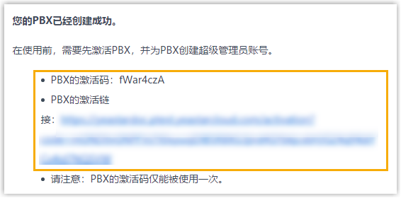 用户需通过邮件中的激活链接和激活码激活 PBX 系统。