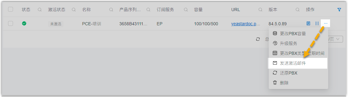 创建 P 系列云 PBX 后,你需要发送 PBX 激活邮件,以便用户可以激活并使用 PBX 系统。