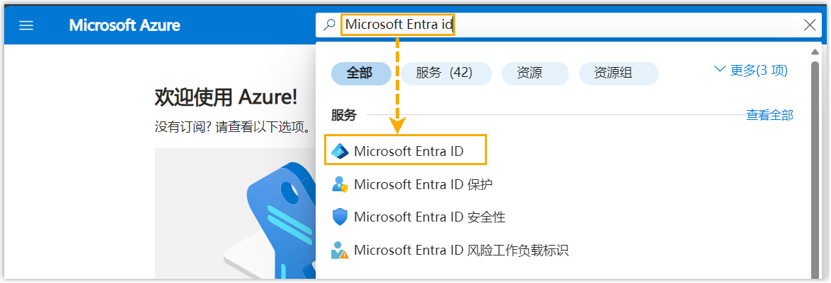 - 在搜索栏,搜索并选择 Microsoft Entra ID 服务,进入组织目录。