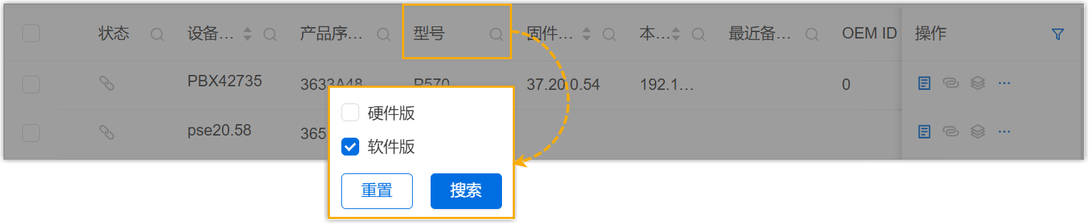 - 在设备列表中,设置顶部栏,已显示 PBX 的 OEM ID。