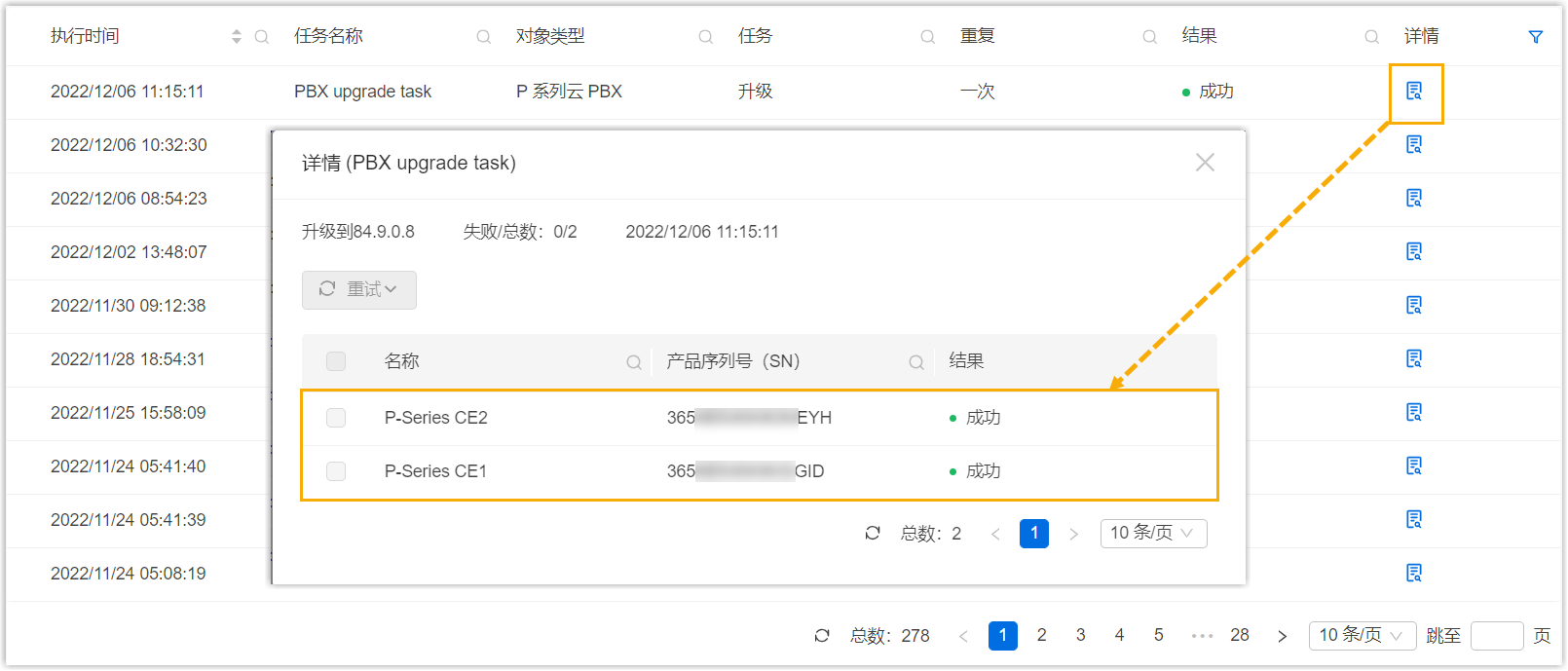 PBX 系统将立即升级,或在指定时间升级,取决于你设置的任务执行时间。